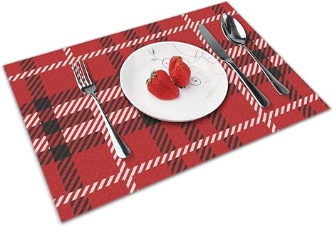 Amazon 赤と黒の木こり背景クッキングマット 耐熱 テーブルマット おしゃれ かわいい 撥水 防汚 断熱 滑り止め クッキングマット 清潔簡単 食卓飾り レストラン創造性のプレースマット30 X 45 Cm ランチョンマット オンライン通販