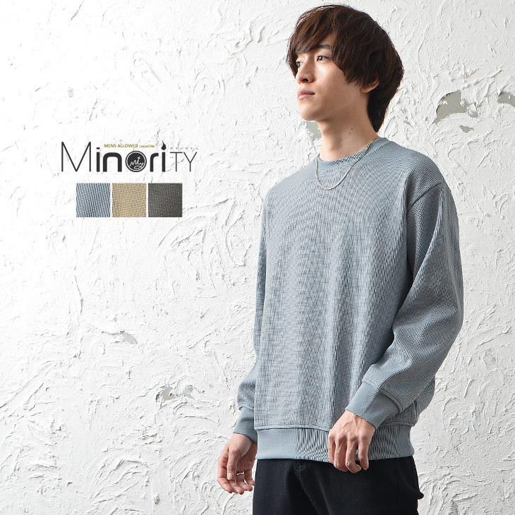 トレーナ メンズ ファッション 冬 スウェット メンズ 上 プルオーバー メンズ 水色 トップス 長袖tシャツ メンズ あぜ編み Minority Yahoo 店 通販 Yahoo ショッピング